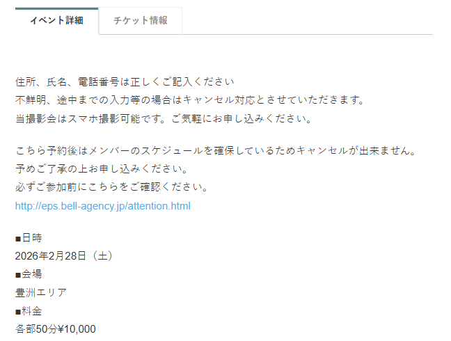 2026年2月28日開催の予約ページでは以下のように書かれています。