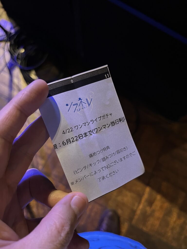 2ndワンマン『True Loop』のガチャで自力で引き当てた、「痛めつけ特典(通称:社畜券)」です。